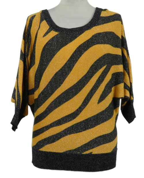 Dámsky čierno-oranžový vzorovaný trblietavý sveter