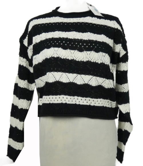 Nové - Dámsky čierno-biely pruhovaný ažurový crop sveter Primark
