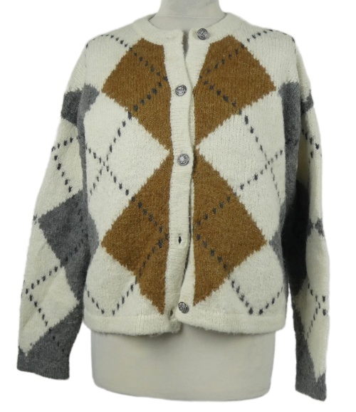 Dámsky bielo-hěndo-sivý károvaný prepínaci sveter Primark