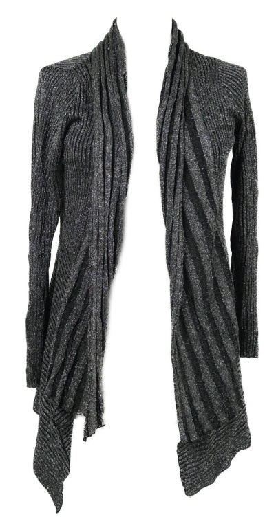 • Nové - Dámsky čierno-strieborný rebrovaný svetrový cardigán