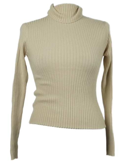 Dámsky béžový rebrovaný crop sveter s rolákom Shein