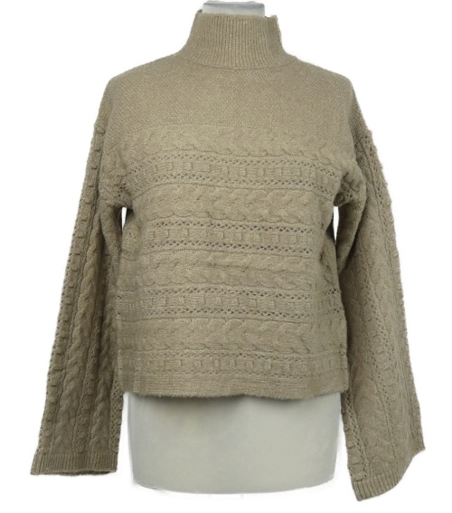 • Nové - Dámsky béžový vzorovaný crop sveter so stojačikom Gallery