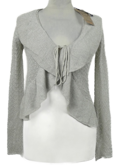 Nové - Dámsky sivý trblietavý svetrový cardigán s volánikmi River Island
