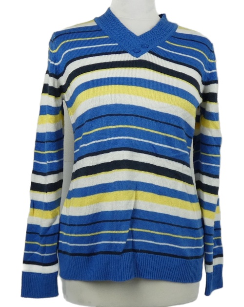 Dámsky modro-žlto-biely pruhovaný sveter Isle