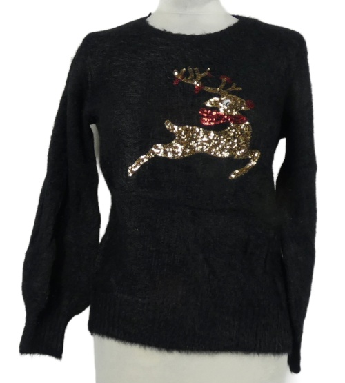 Dámsky čierny chlpatý sveter so sobem z flitrů Peacocks