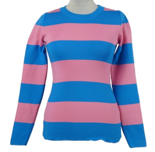 Dámsky modro-ružový pruhovaný sveter Savida
