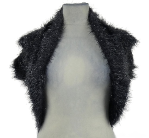 Dámske tmavosivé trblietavé chlpaté svetrové bolerko