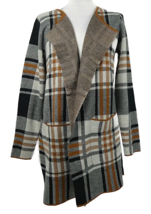 Dámsky čierno-skořicovo-biely kockovaný svetrový cardigán Laura Torelli