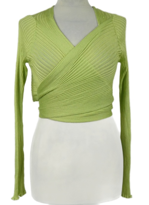 Nové - Dámske svetlozelené rebrované pletené zavinovací tričko Sophie