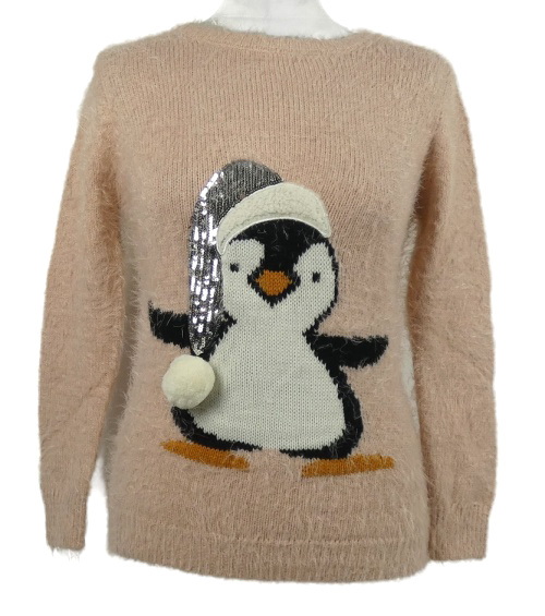 Dámsky svetloružový chlpatý sveter s tučňákem Primark