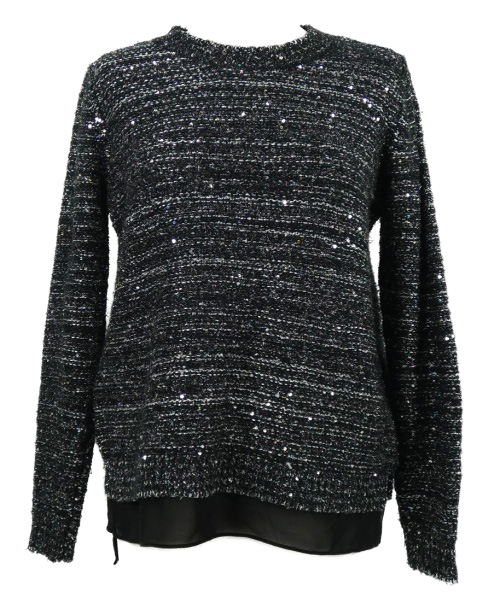 Dámsky čierno-strieborný melírovaný sveter so šifónovým volánikom M&S