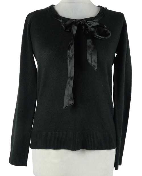 Dámsky čierny sveter s mašlou Basic One