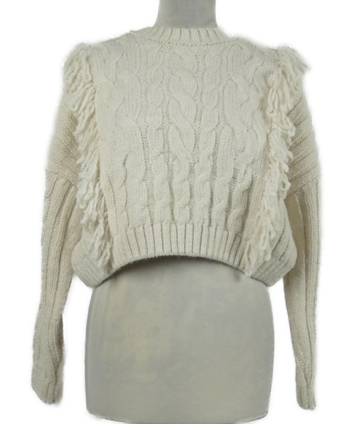 Dámsky smotanový vzorovaný crop sveter s strapcemi Primark
