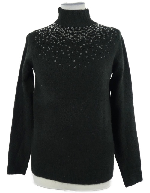 Dámsky čierny sveter s flitrami a rolákom Montego