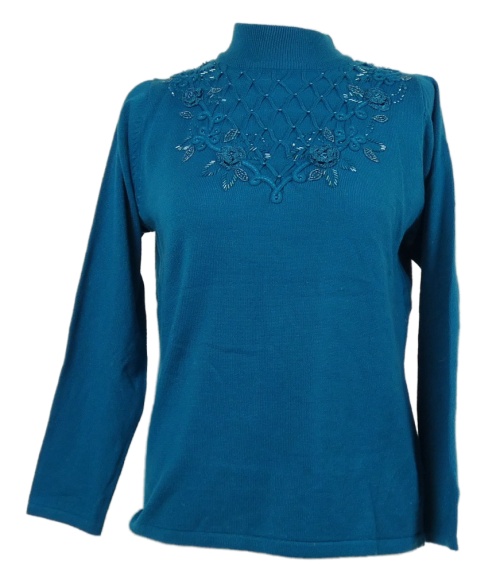 Dámsky modrý sveter s výšivkou BM