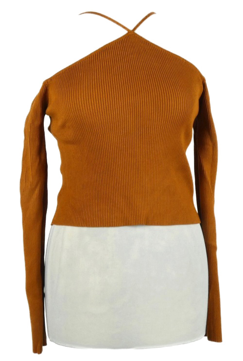 Dámsky skořicový crop rebrovaný sveter s volnými rameny Zara