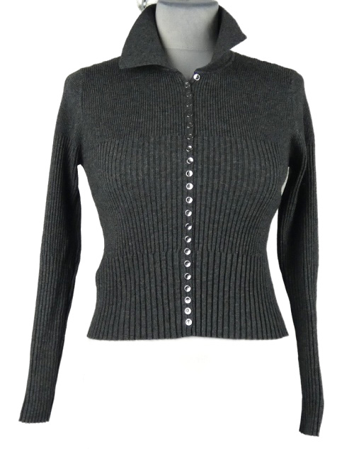 • Dámsky tmavosivý rebrovaný prepínaci crop sveter s golierikom MNG