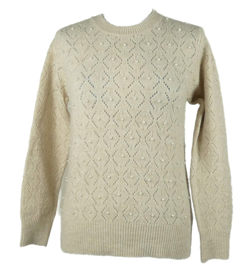 Dámsky béžový děrovaný sveter s perlami 17&Co