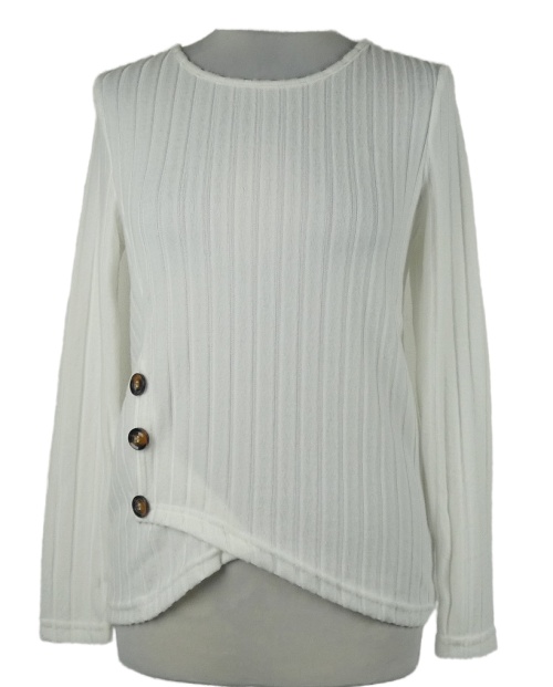 Dámsky biely rebrovaný ľahký sveter s gombíkmi Shein