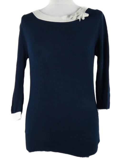 Dámsky tmavomodro-biely sveter s mašlou Wallis