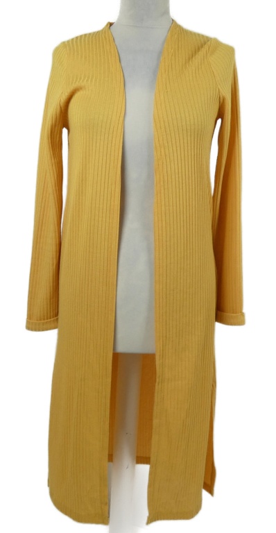 Dámsky žltý rebrovaný dlhý úpletový cardigán