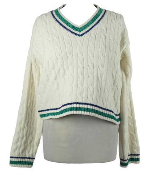 • Dámsky smotanový žinylkový crop oversized sveter s pruhmi Bershka