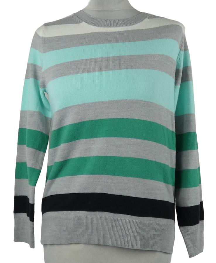 Dámsky sivo-zeleno-modrý pruhovaný sveter M&S