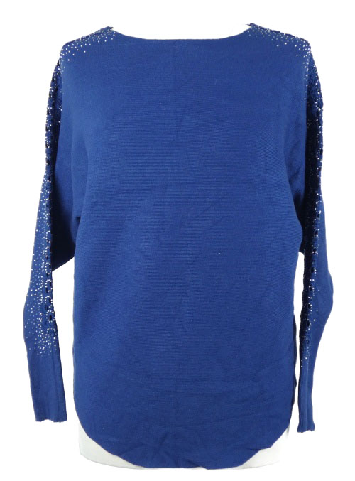 Dámsky tmavomodrý voľné ý sveter s čipkou a kamienkami