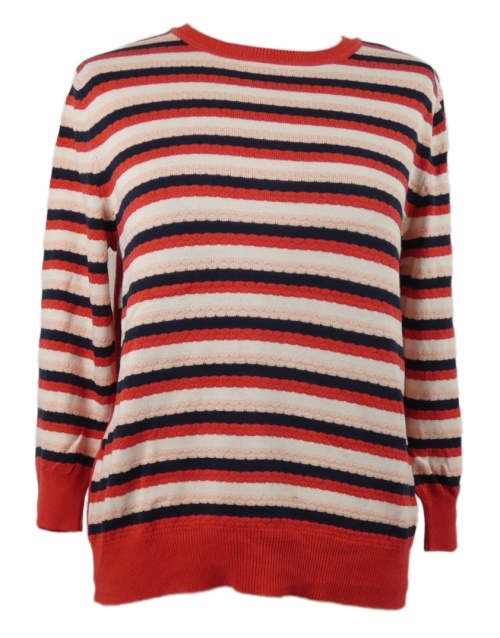 Dámsky červeno-ružovo-tmavomodrý pruhovaný sveter Oasis
