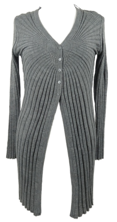Dámsky sivý rebrovaný dlhý svetrový cardigán Monsoon
