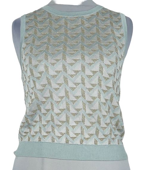 Dámska světlemodro-zlato-biela vzorovaná svetrová crop vesta Asos