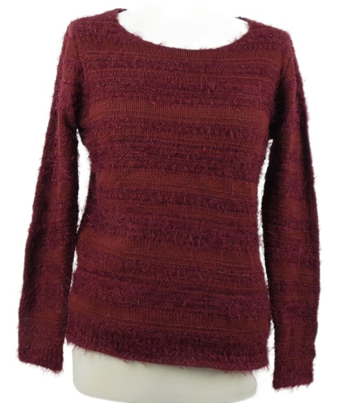 Dámsky vínový pruhovaný chlpatý sveter C&A