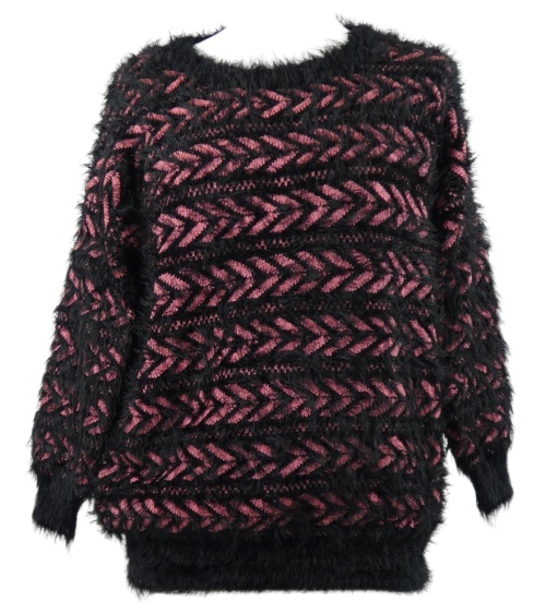 Dámsky čierno-ružový vzorovaný chlpatý sveter Qed London