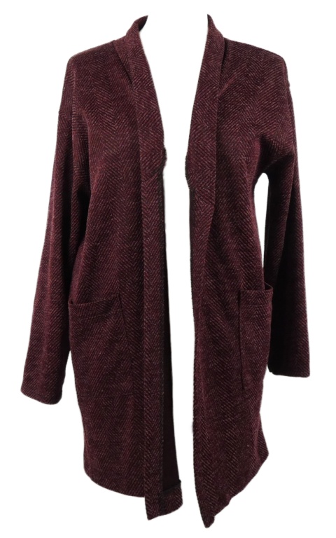 Dámsky vínový vzorovaný úpletový cardigán