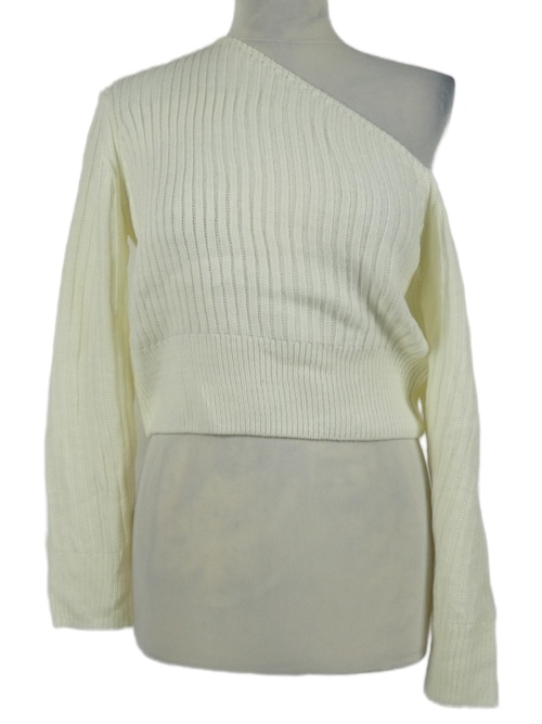 Dámsky smotanový rebrovaný asymetrický crop sveter Shein