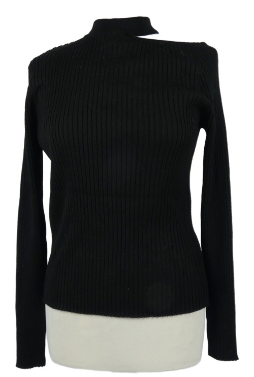 Dámsky čierny rebrovaný sveter s prestrihom New Look