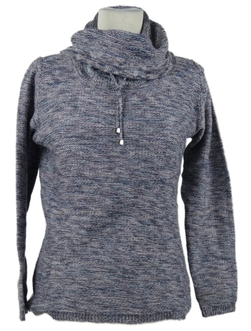 Dámsky modro-ružový melírovaný sveter s komínovým golierom