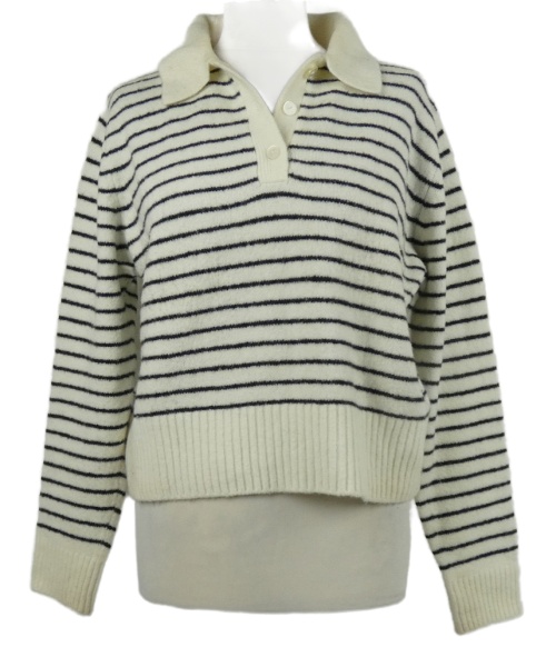 Dámsky bielo-čierny pruhovaný sveter s golierikom Primark