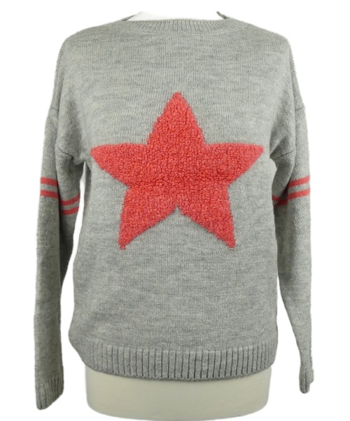 Dámsky sivý sveter s hviezdou a prúžkami Next