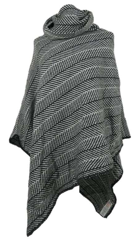 Dámske čierno-sivé vzorované svetrové pončo s rolákom Wallis
