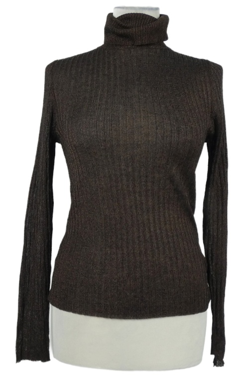 • Dámsky hnedo-čierny melírovaný rebrovaný ľahký sveter s rolákom Primark