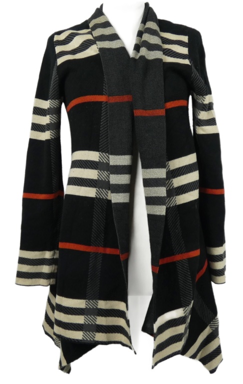 • Dámsky čierno-béžovo-červený pruhovaný svetrový cardigán FWM