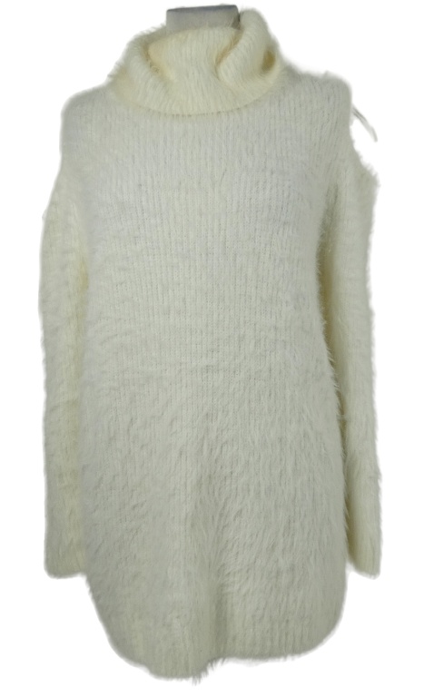 • Dámska biela chlpatá svetrová tunika s prestrihmi a rolákom Peacocks