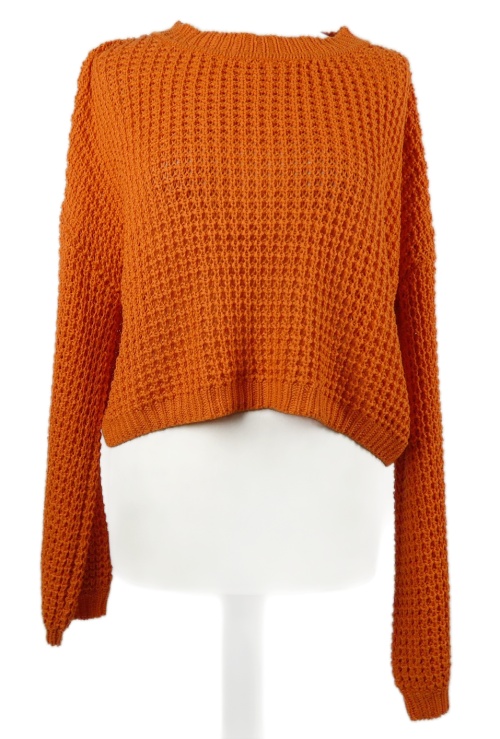 Dámsky oranžový ažurový crop oversized sveter Oasis