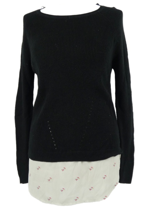 Dámsky čierny sveter s bílou halenkovou vsadkou