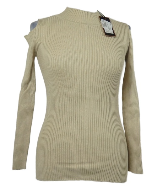 • Nové - Dámsky béžový rebrovaný sveter s průstřihy na ramenou Qed London