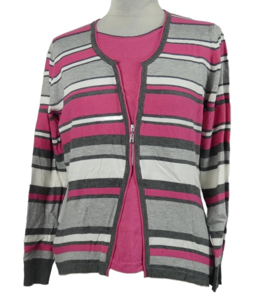 Dámsky sivo-ružovo-biely pruhovaný ľahký sveter Rabe