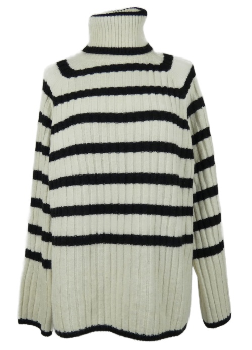 • Dámsky smetanovo-čierny pruhovaný rebrovaný sveter s rolákom H&M