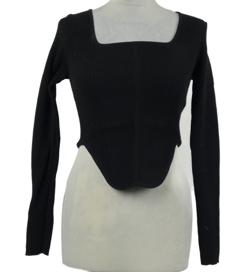 Dámsky čierny rebrovaný crop sveter Primark