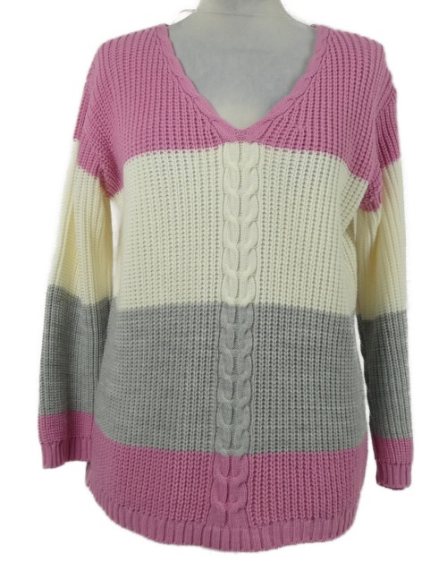 Dámsky ružovo-bielo-sivý pruhovaný sveter Glimpse